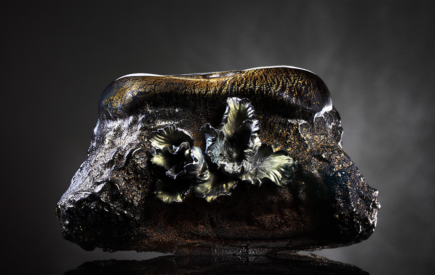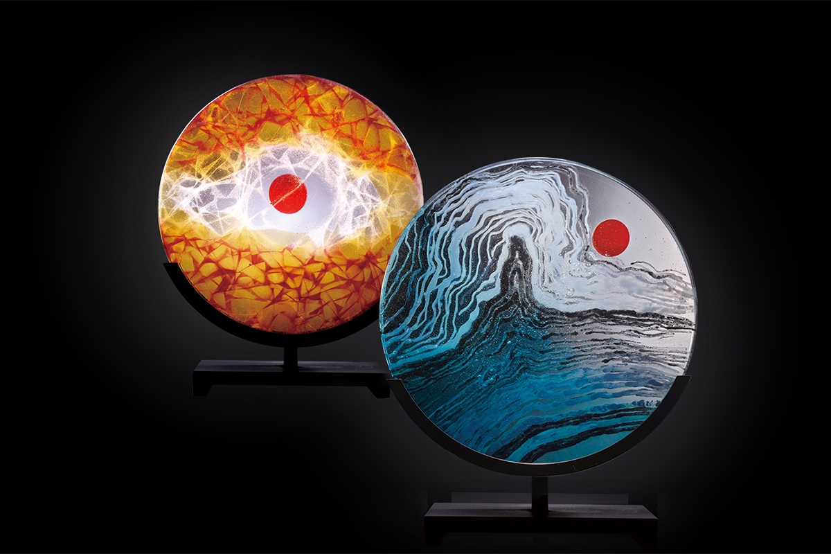 焰火禅心系列,把我们带到一个真实的地表,强大的风暴裡感受著狂烈的火被塑形到了玻璃中,而在这一团炼狱的表面却有一朵花正在绽放。是另一种对立的结合,更是另一种壮丽的形式。