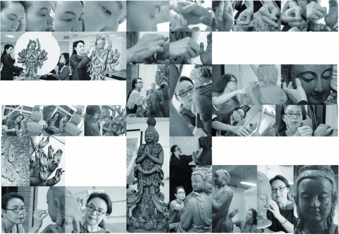 1999年4月,中国敦煌研究院樊锦诗院长邀请杨惠姗在2000年藏经洞发现一百年纪念时,到敦煌展览。杨惠姗开始奋起,雕塑第三窟千手千眼壁画立体造像。